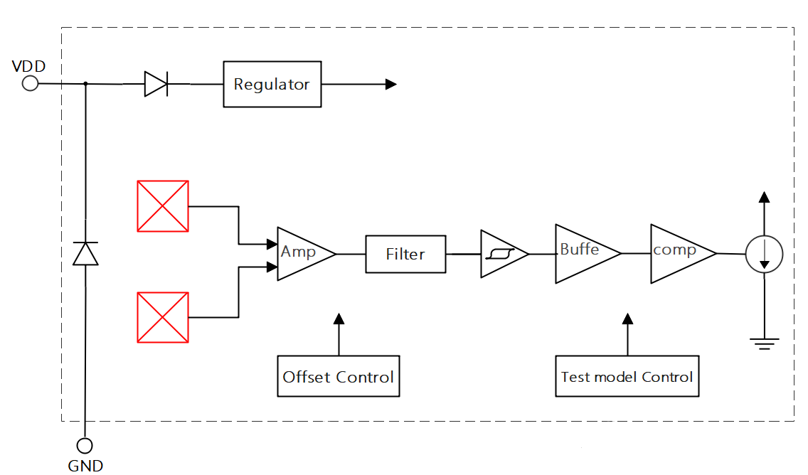 2、特点 双线式电流输出 灵敏度高 空气间隙大 N/S极感应 工作温度范围宽 单芯片解决方案 ESD 8KV HBM |